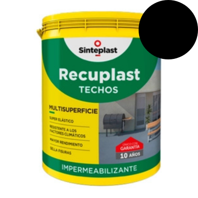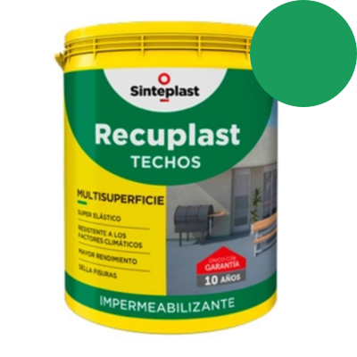 Recuplast Techos es un impermeabilizante acrílico para techos de base acuosa con características de "membrana liquida". Aplicado en el espesor recomendado, una vez seco, forma una película super elástica, alta resistencia mecánica y a los factores climáticos, que impermeabiliza el sustrato por aproximadamente 10 años (de no mediar factores ajenos al producto que deterioren las condiciones iniciales).