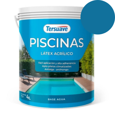Tersuave Piscinas Látex Acrílico, es un producto desarrollado para piletas de natación de fácil aplicación y alta adherencia. Su formulación base agua de alta resistencia genera una película de gran impermeabilidad. Posee aditivos que evitan la adherencia de algas y hongos, además es de rápido secado y bajo olor. Su pigmentación de alta calidad garantiza la firmeza del color a lo largo del tiempo. Apto piletas climatizadas.