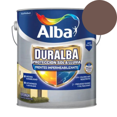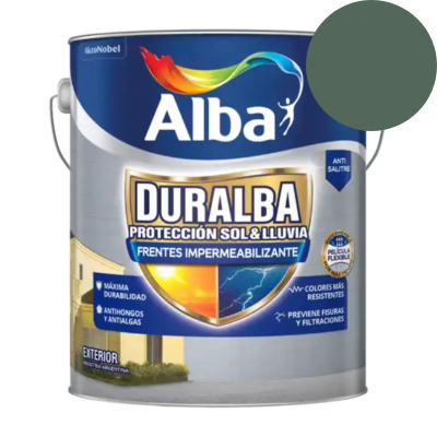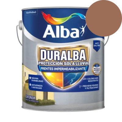 Duralba Protección Sol & Lluvia Super Acrílico es una pintura especialmente desarrollada para paredes exteriores. Contiene poderosos agentes antihongos y antialgas. Excelente poder cubritivo y gran integridad de película que proporciona más protección, resistencia y durabilidad a los colores. De fácil aplicación y rápido secado. Bajo olor.